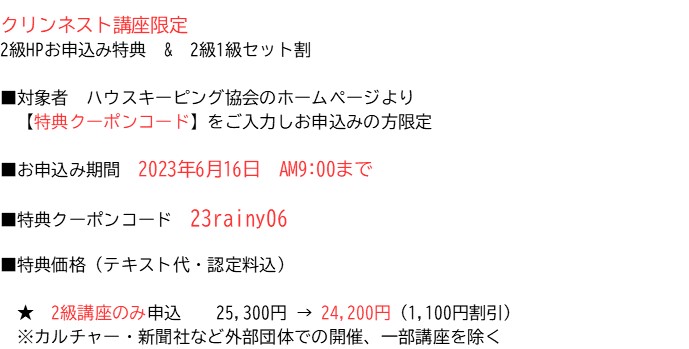 クリンネスト2級の再受講についてはこちらをご覧ください。