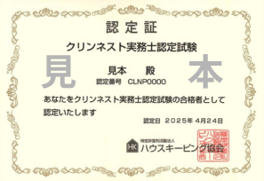 ~WEB受験できる、仕事としてのクリンネストの知識を習得したことを認定~